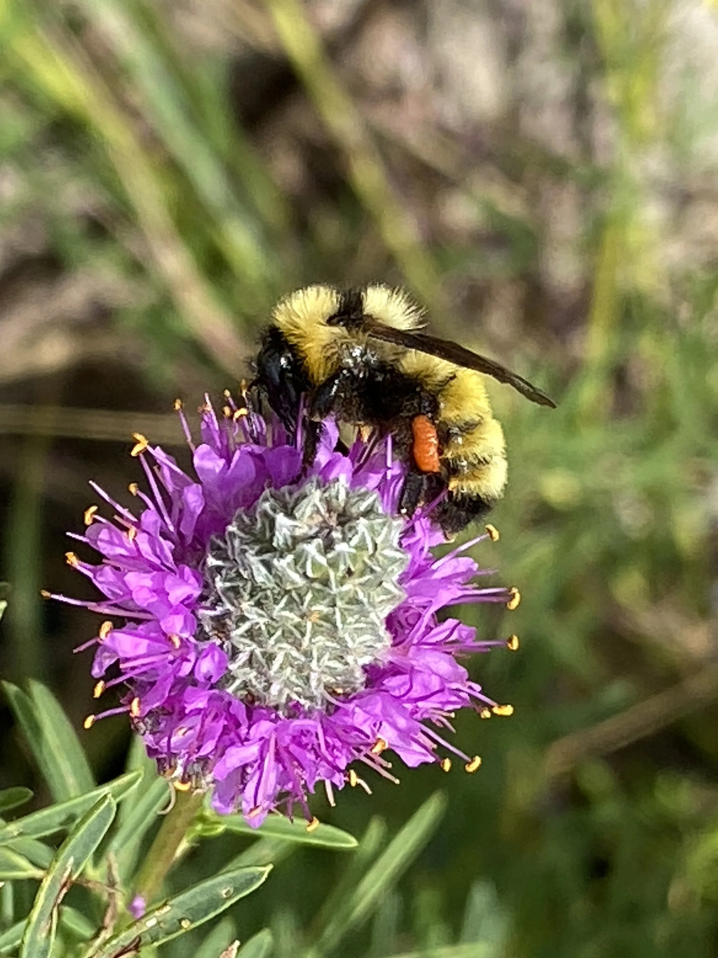 A bumble bee collects pollen on the native purple prairie clover in Jennifer’s yard. Photo by Jennifer Lazewski