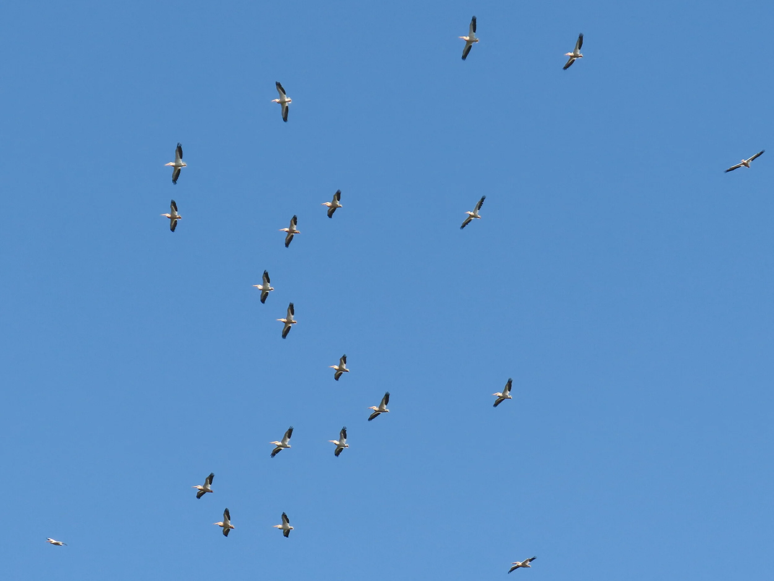 If you’ve got a good idea of what a group of 10 American white pelicans looks like, you might be able to take scan this overhead flock and estimate that there are about 20 birds. You’d be pretty close—there are 21! If you have time and the birds are circling slowly enough, practice! Estimate a guess first, then count them one by one and see how close you were. This is a great way to refine your skills. Photo by Caitlyn Schuchhardt