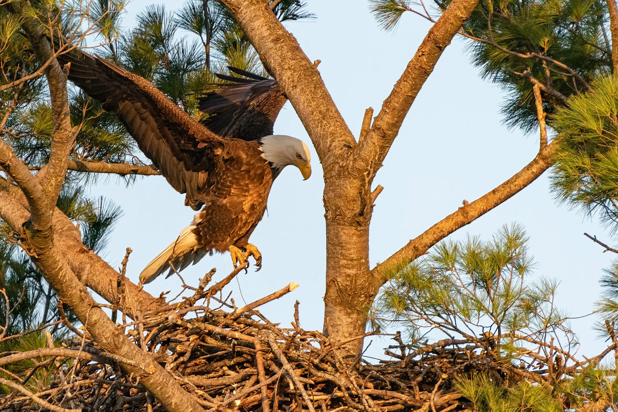 A Bald Eagle lands in a nest. Photo by Mike Williams, BENW volunteer