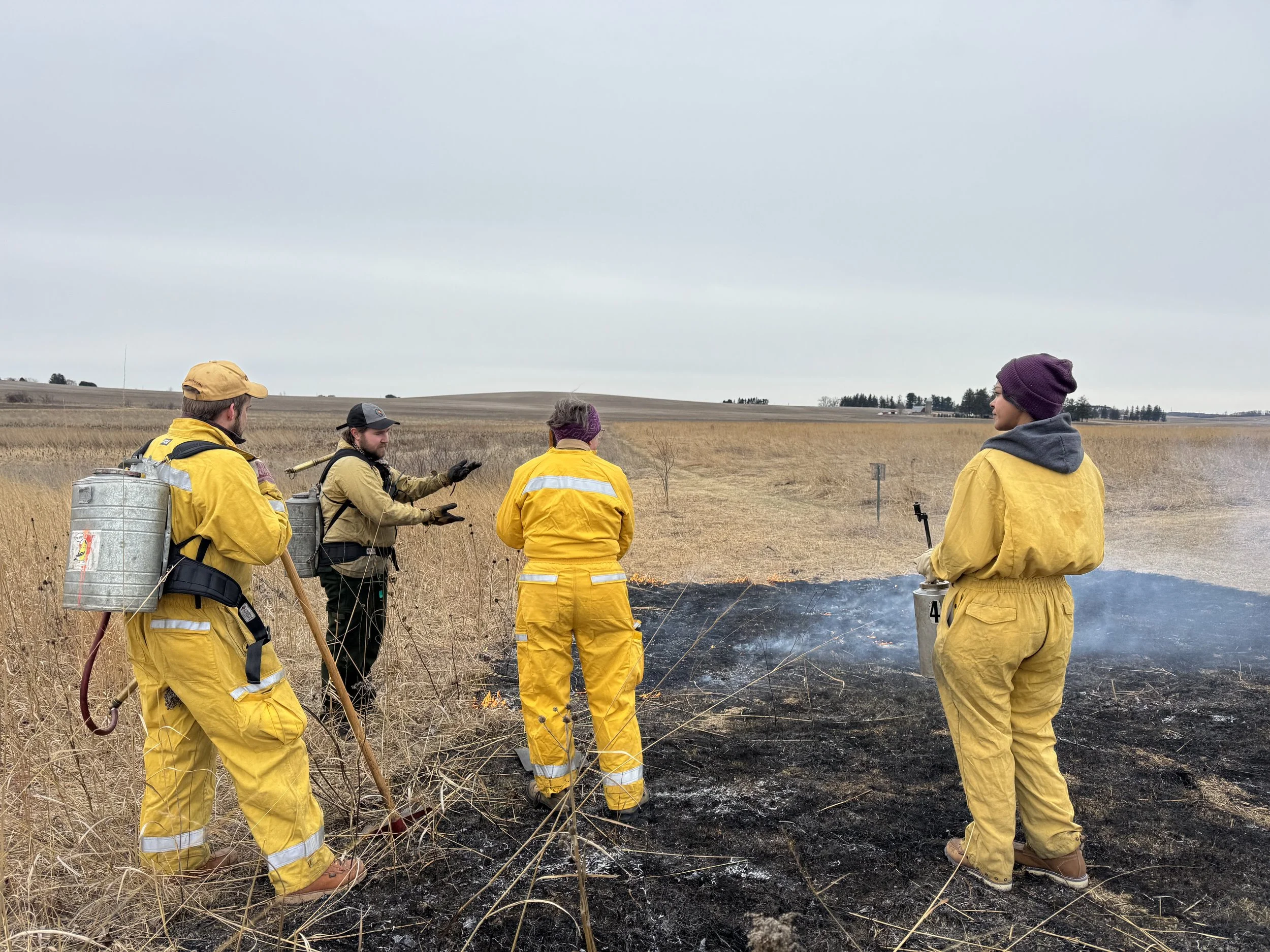 In true March-in-Wisconsin fashion, we wound up hosting our Saturday training in between a Friday with wind gusts of 55 mph and a Sunday blizzard (first March one since 2012)! Despite the cold, we had a great session and successfully instructed 14 new volunteers on the principles of prescribed fire, burning in fire breaks, and suppressing spot fires. Extra thanks to our volunteer instructors Matt Switzler, Cayla Matte, Tucker Sanborn, and Miles Roth for sharing your knowledge and passion for prescribed fire!