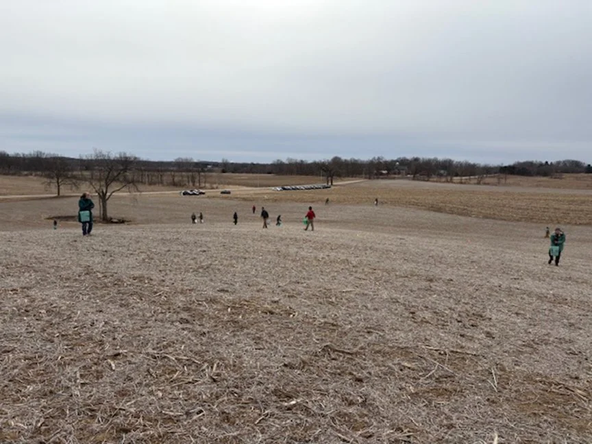 Winter was a busy season at Hillside Prairie Sanctuary. On December 16, 2025, fourteen volunteers and staff hand-planted 12 acres of prairie near the parking area. Then, on January 29, Graham Steinhauer planted 34 acres south of those 12 acres in one day using a Dane County Parks utility terrain vehicle. To date, 64.5 acres have been planted to prairie at the sanctuary!
