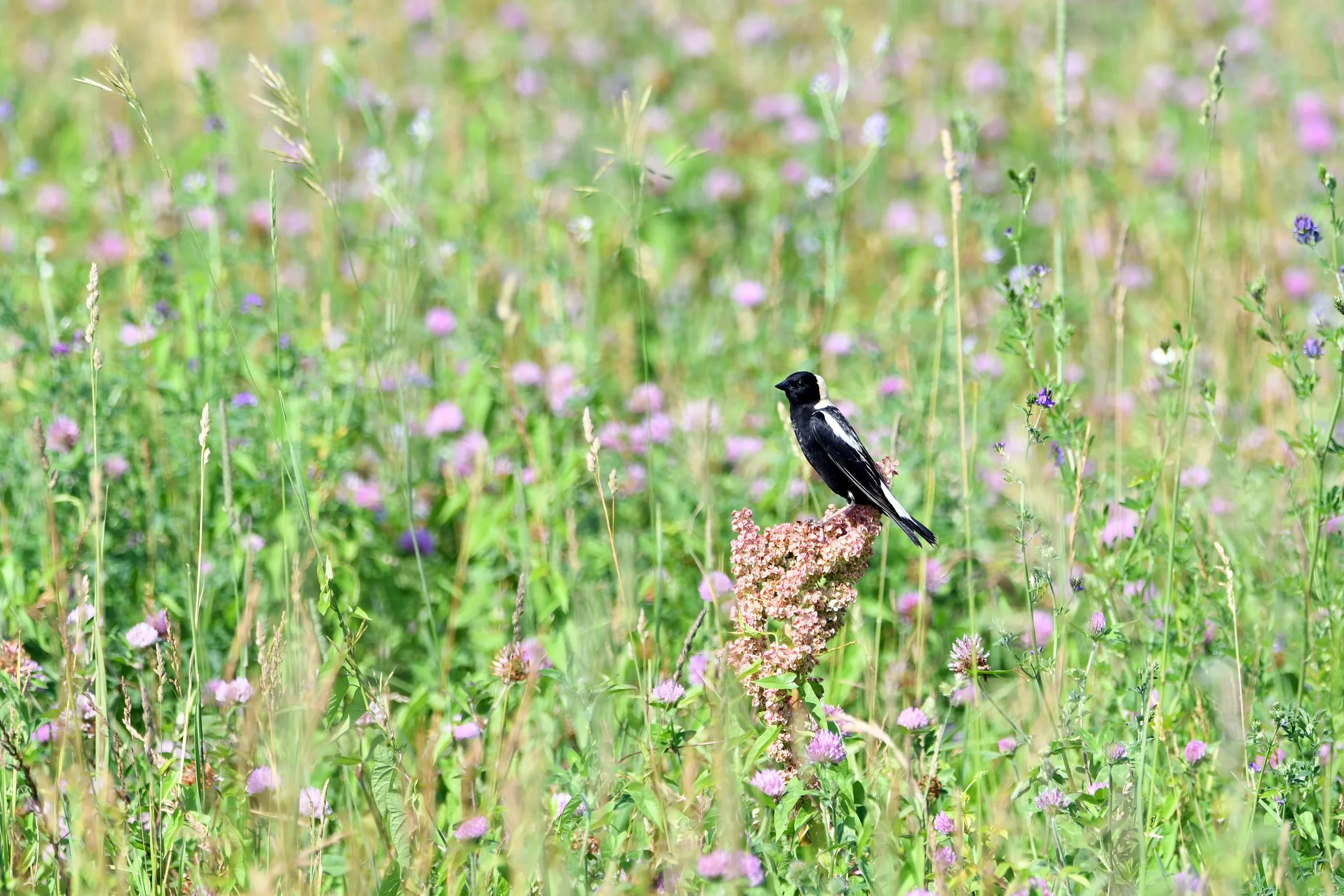 Bobolink at Hillside Prairie in June 2025 (photo by Kaitlin Svabek/SoWBA).
