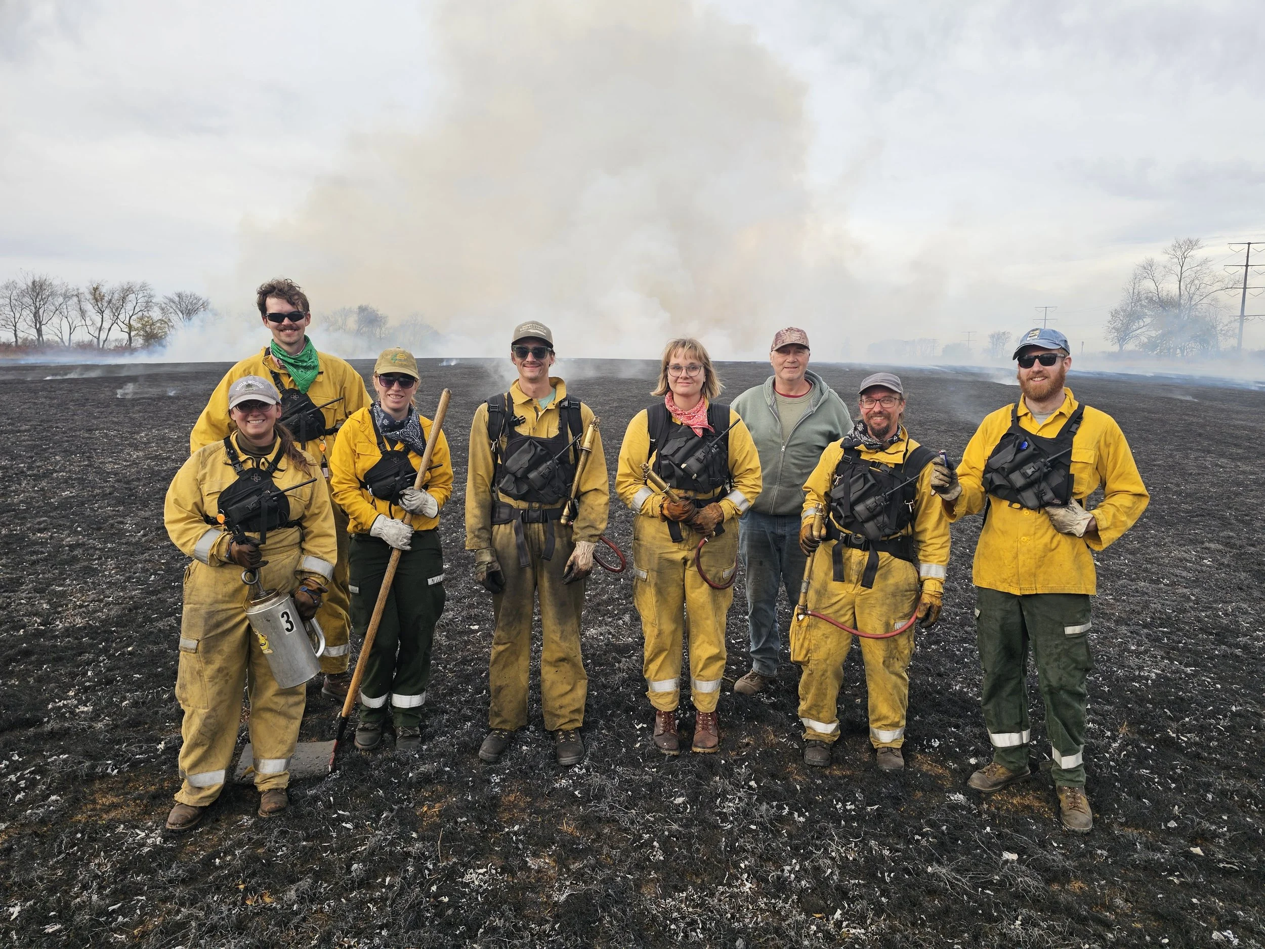 Staff and volunteer Bob Volenec burn 46 acres at Hillside Prairie in November 2025 (photo by Mark Martin).