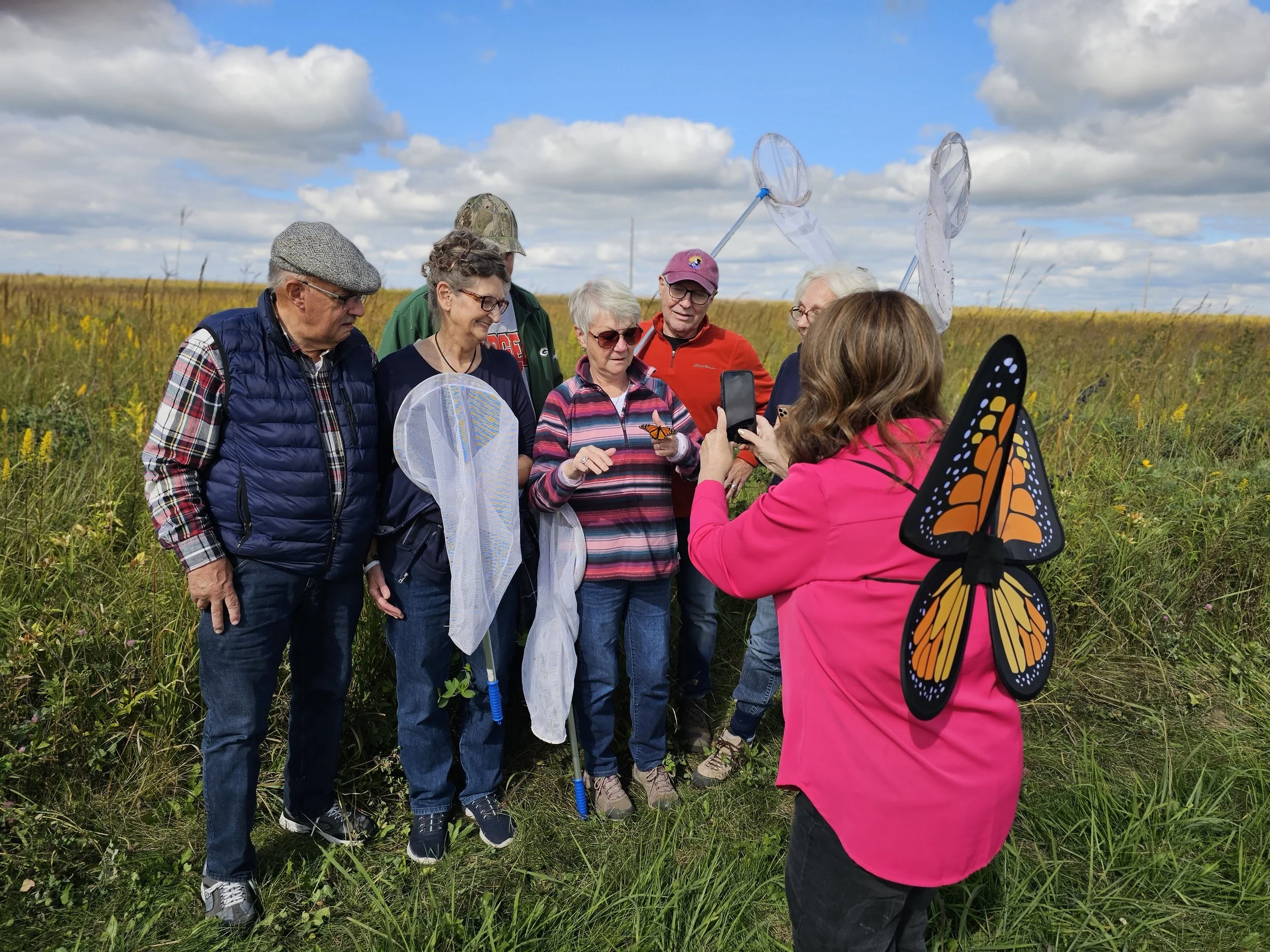 Monarch tagging is an excellent way to connect people of all ages and backgrounds with nature. Goose Pond staff hosted nine monarch tagging sessions: six for Badgerland Bird Alliance, two for Natural Resources Foundation, and one for Discovery Charter School. In total, 80 children (as young as five years old) and 151 adults (as old as 90 years old) visited Goose Pond to learn about monarch butterflies and to assist with this important citizen science effort. Jerry Martin (age 90) was pleased to be able to release eight butterflies. Thank you to everyone that assisted with tagging monarchs this fall!