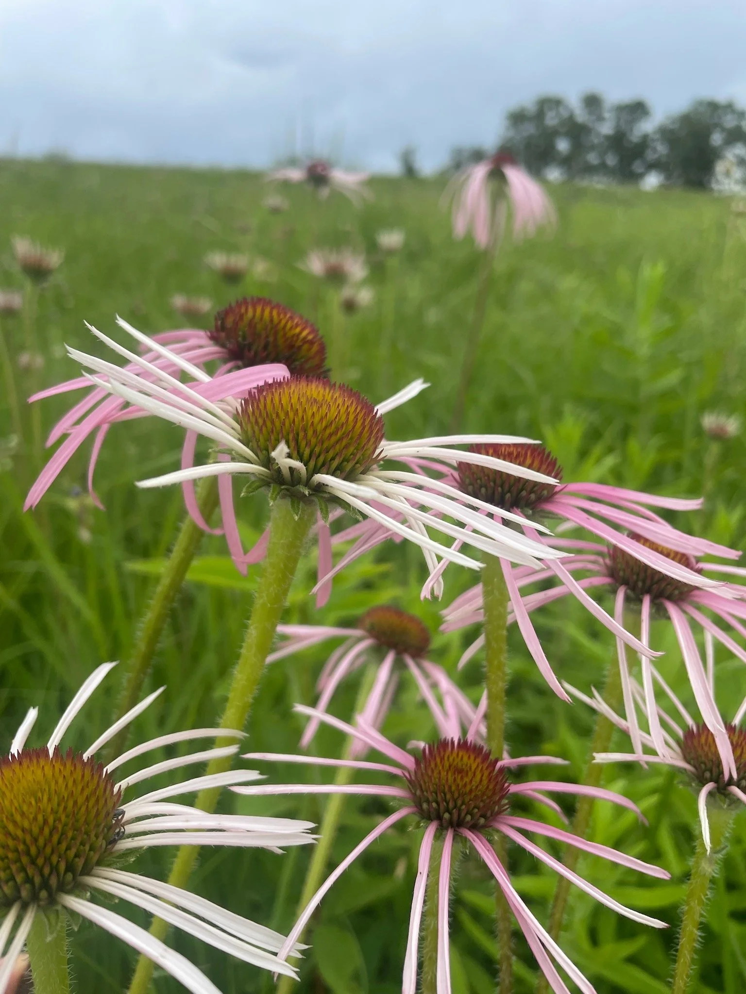 May’s bright golden blanket of alexanders gave rise to the deep indigo of June spiderwort, with pale purple coneflower sprinkled in by early July, finally settling into the deep gold of late summer sunflowers. Less conspicuous prairie birthdays hide in this array—wood betony maturing underfoot, big bluestem seedheads drooping, and just recently, my first handful of wild blackberries ripening under a leaf.