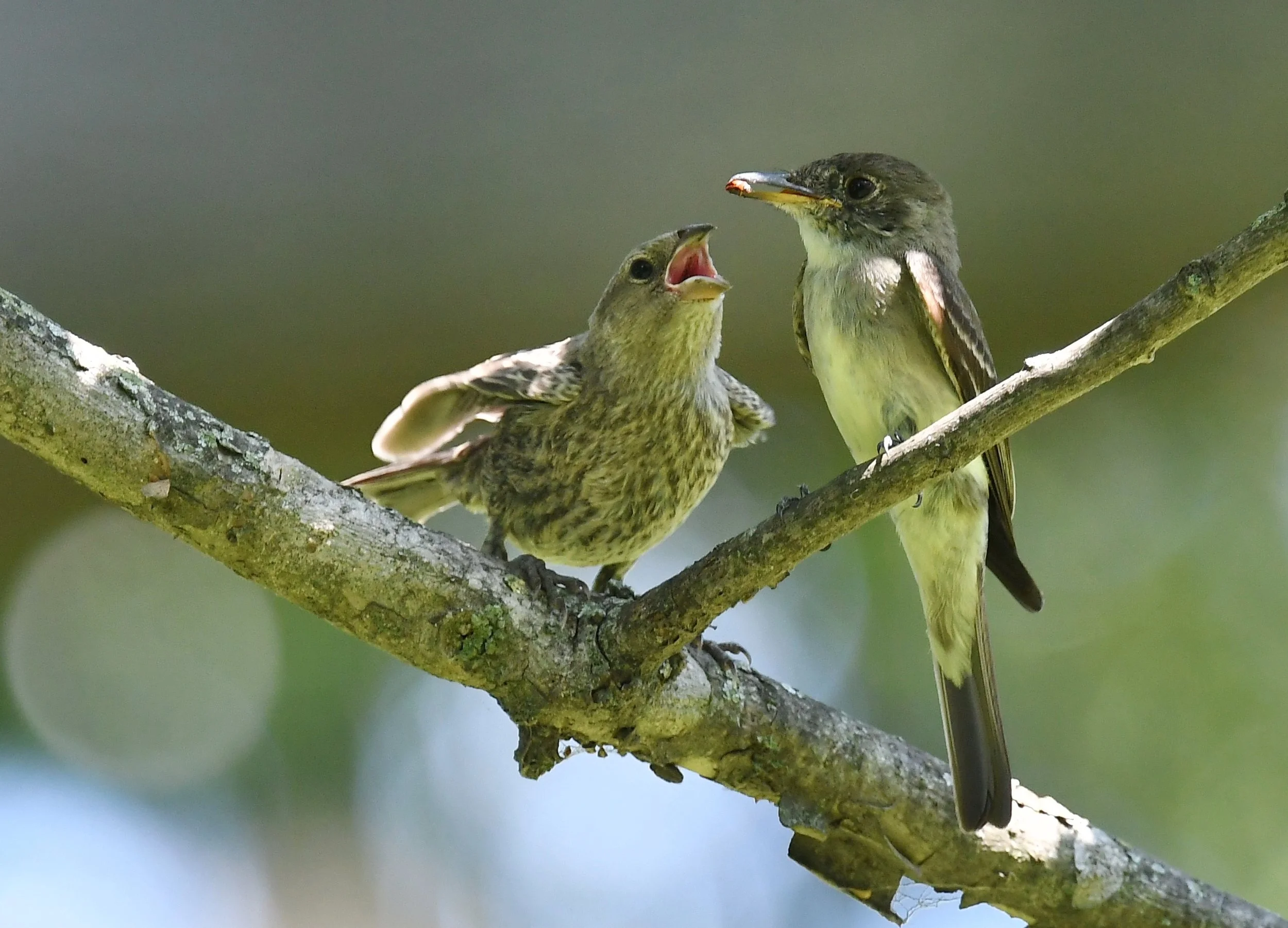 An Eastern Wood-Pewee feeds a juvenile Brown-headed Cowbird (photo by Andy Reago & Chrissy McClarren).
