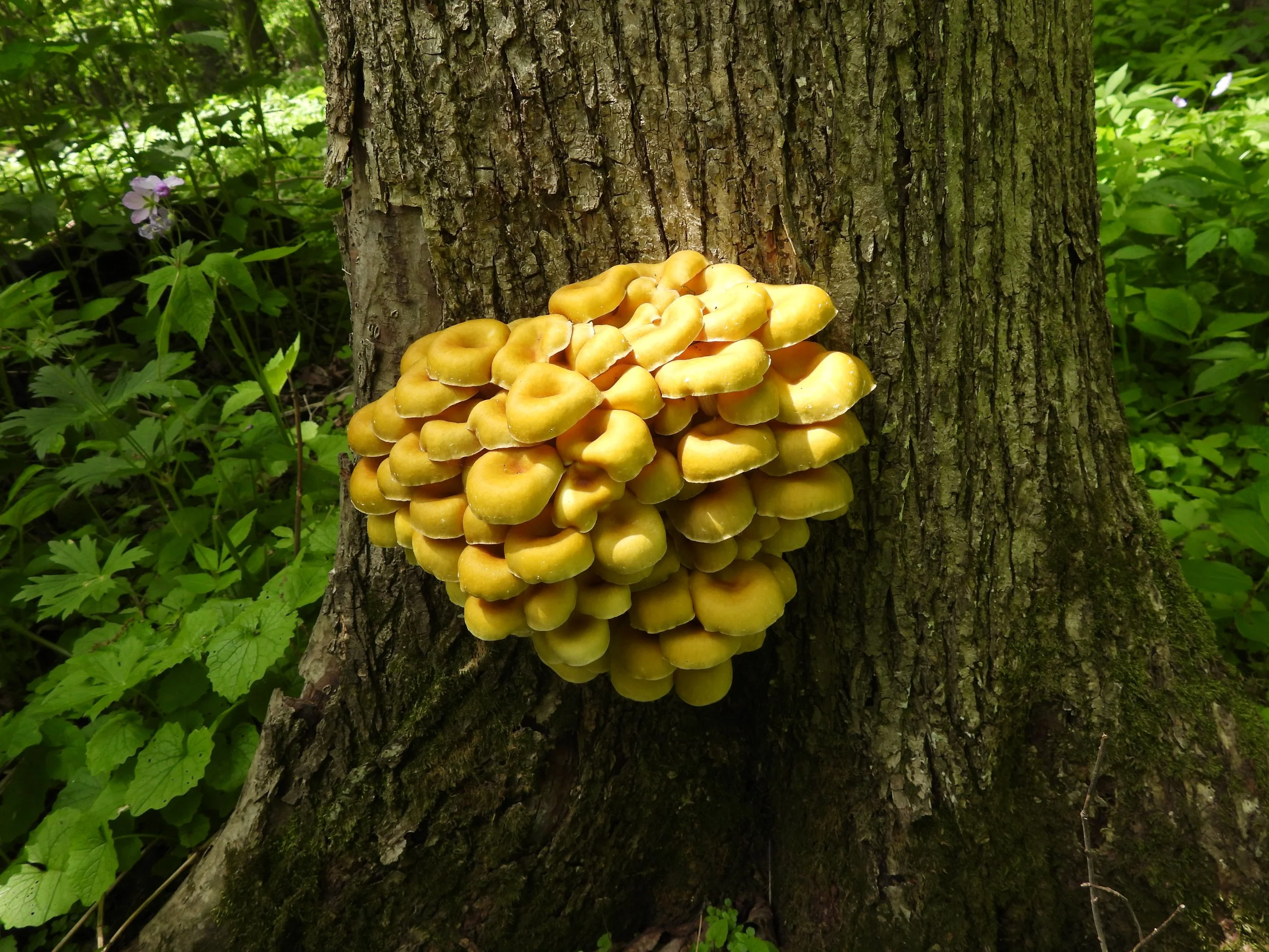 Jim’s observation of a golden oyster mushroom, a nonnative and invasive species, at Otsego Marsh on May 26, 2025 (photo by Jim Otto).