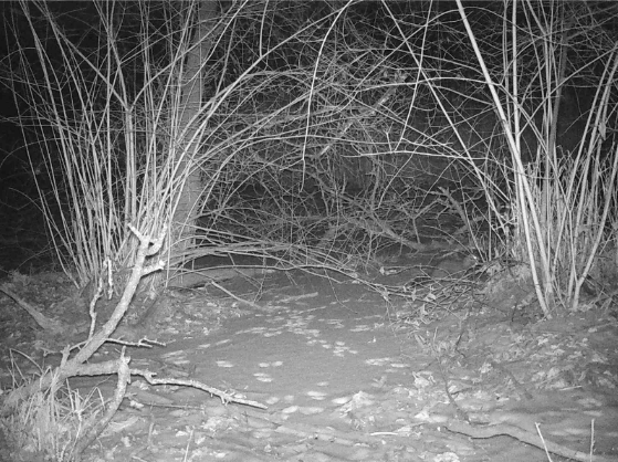 Snapshot Wisconsin trail camera photo of mystery mustelid in center right (photo courtesy of ALNC)
