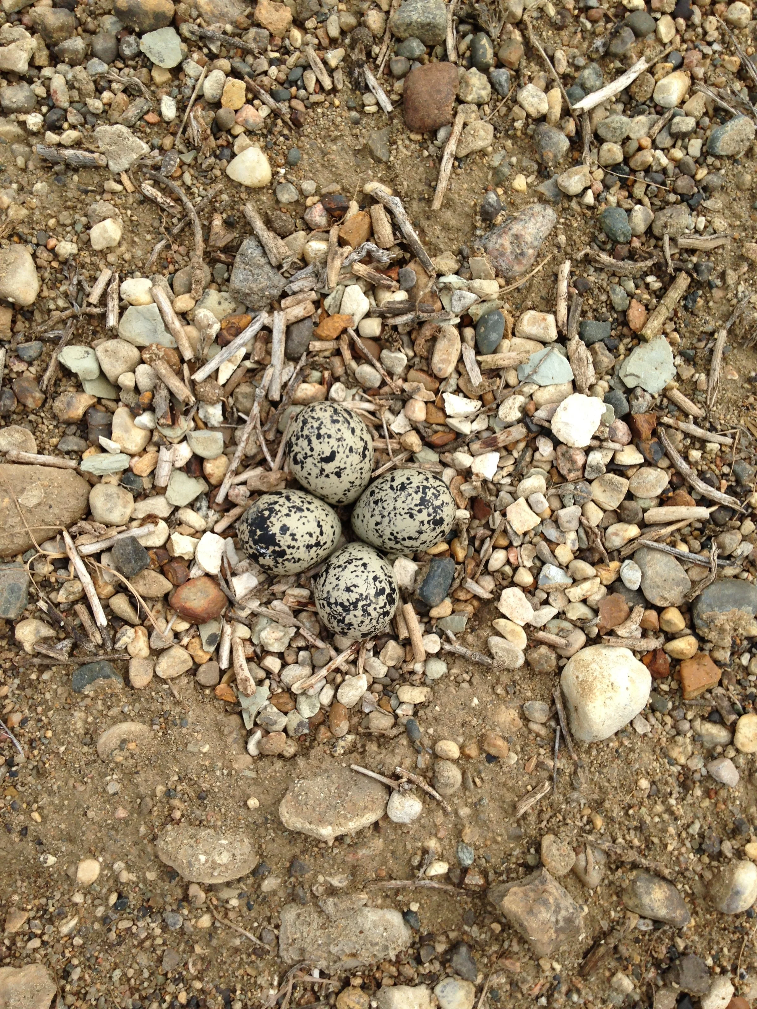 And those eggs are really good for camouflage. So it makes it much harder to see the eggs so that any predator that's just walking around looking for food, it'd be really hard for them to see them. So much so that like, you know, Killdeer? They're little birds, they often lay their eggs near parking lots or if there's gravel or something or rocks, they put their eggs right on the rocks. And even if you know where a nest is, like, say, somebody pointing to it, they're like, ‘the nest is right there.’ It takes you a little while before your eyes and your brain can connect and figure out that it's actually an egg, because they're so well camouflaged.